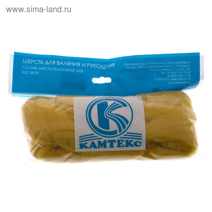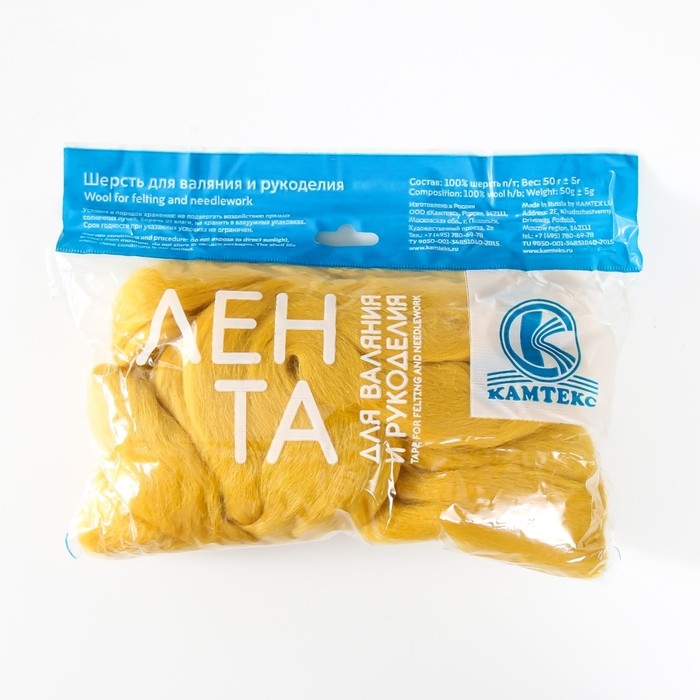 Шерсть для валяния 100% полутонкая шерсть 50 гр (099 св. горчица)