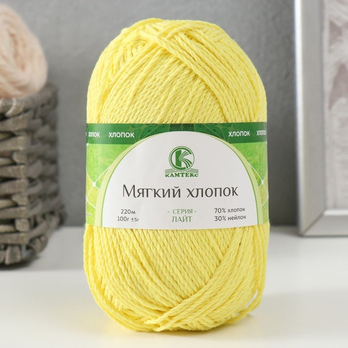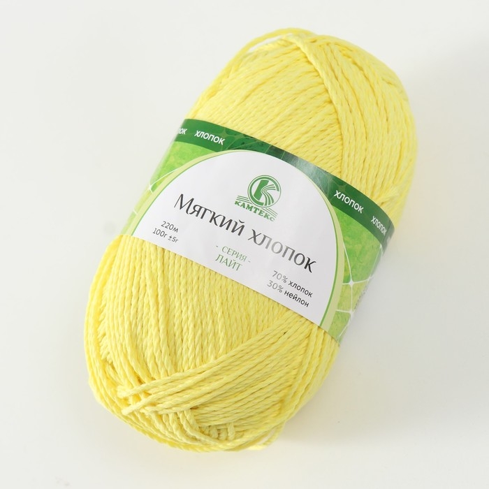 Пряжа "Мягкий хлопок" 70% хлопок, 30% нейлон 220м/100гр (030 лимон)