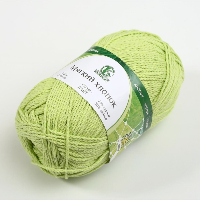 Пряжа "Мягкий хлопок" 70% хлопок, 30% нейлон 220м/100гр (026 салат)