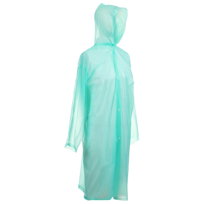 Дождевик защищает одежду от влаги, спасает от косых ливней. Освобождает руки - не нужно брать с собой зонтик. В сложенном состоянии дождевик занимает мало места, легко помещается в рюкзаке или сумке. Застёгивается на кнопки.