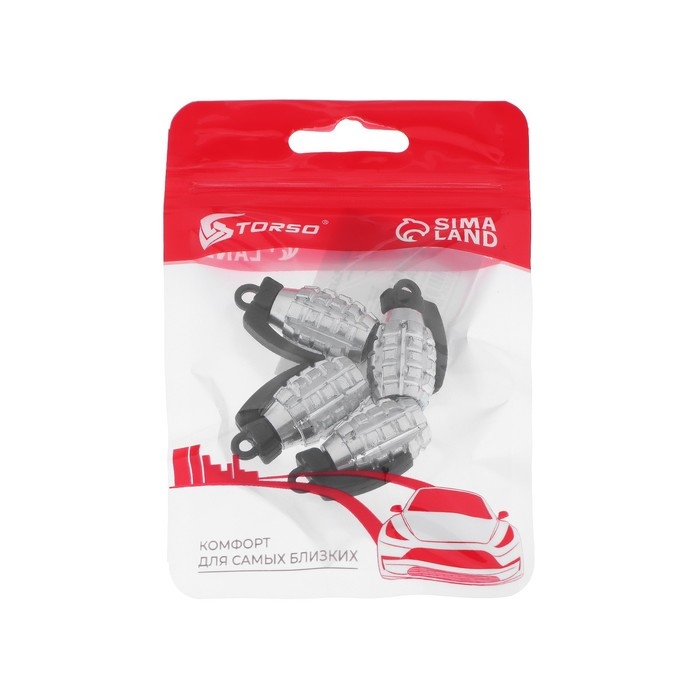 Колпачок на автомобильный вентиль TORSO, хром, набор 4 шт