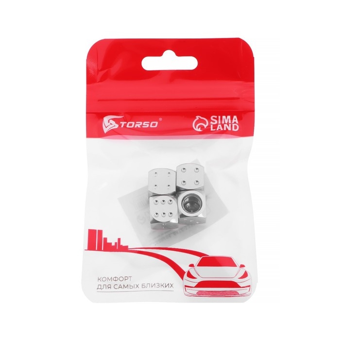 Колпачок на автомобильный вентиль TORSO, хром, набор 4 шт