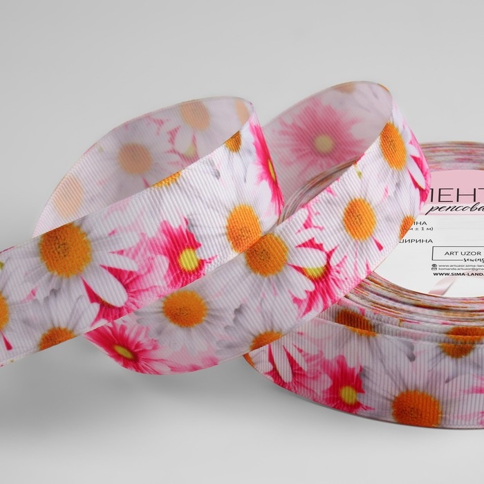 Лента репсовая «Ромашки», 25 мм, 18 ± 1 м, разноцветная