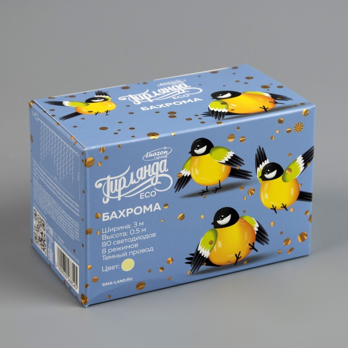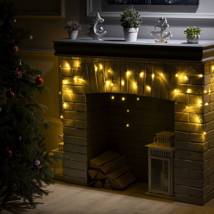Гирлянда «Бахрома» 3 × 0.5 м, IP20, тёмная нить, 80 LED, свечение тёплое белое, 8 режимов, 220 В