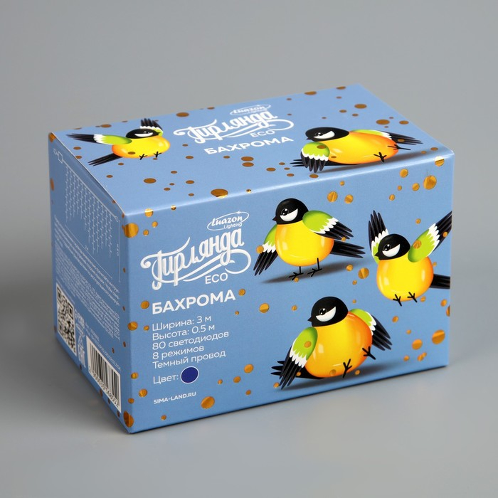 Гирлянда «Бахрома» 3 × 0.5 м, IP20, тёмная нить, 80 LED, свечение синее, 8 режимов, 220 В