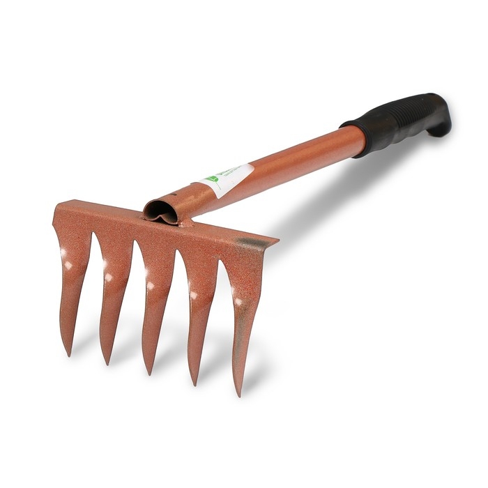 Малые прямые грабли, 5 витых зубцов, длина 39 см, металл, металлическая ручка