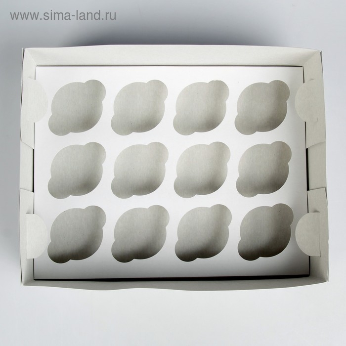 Упаковка на 12 капкейков, белая, 32,5 х 25,5 х 10 см
