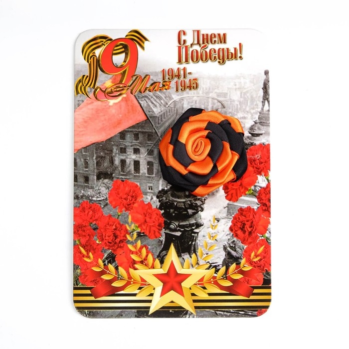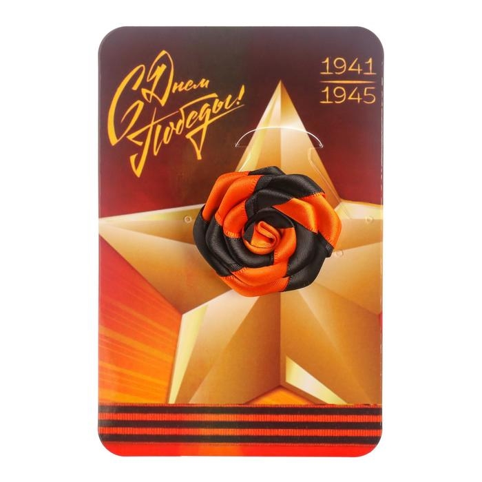 Брошь - цветок из георгиевской ленты "С Днем Победы 1941-1945" к 9 мая