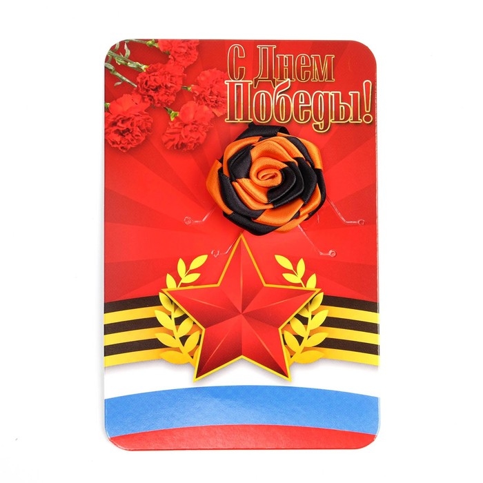 Брошь - цветок из георгиевской ленты "С Днем Победы - Красная звезда" к 9 мая