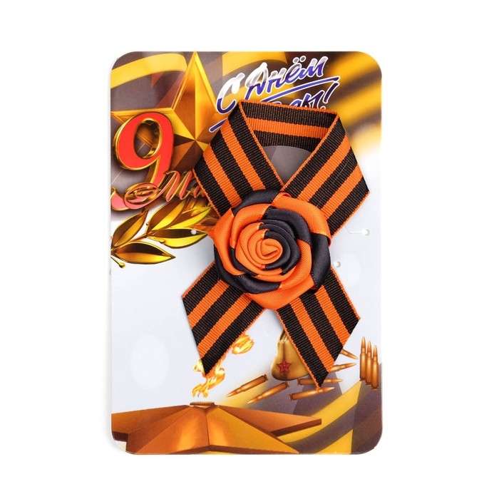 Брошь - георгиевская лента с цветком "9 мая - Вечный огонь"