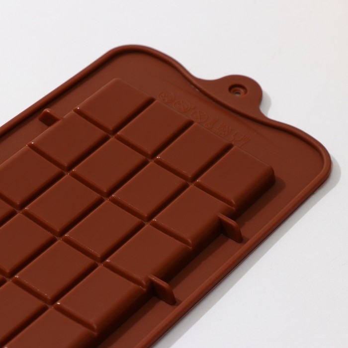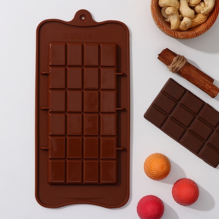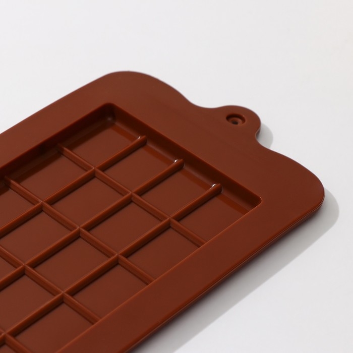 Форма для шоколада Доляна «Плитка», силикон, 22,5×10,5×0,2 см, 24 ячейки (2×2,5 см), цвет коричневый