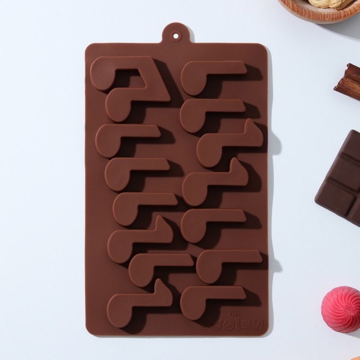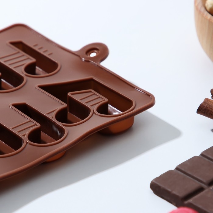 Форма для шоколада Доляна «Ноты», силикон, 19,5×12×1 см, 15 ячеек (4,2×2,2 см), цвет коричневый
