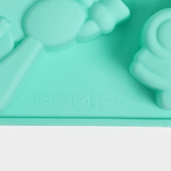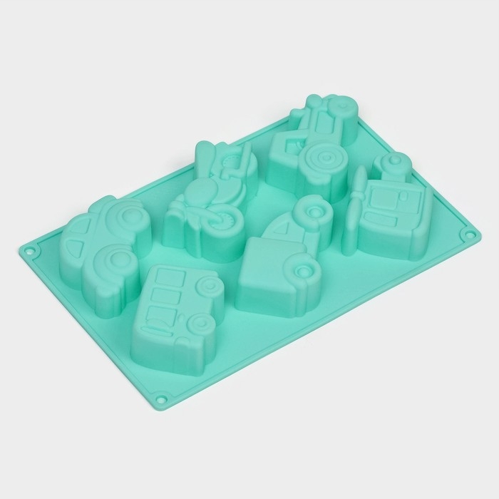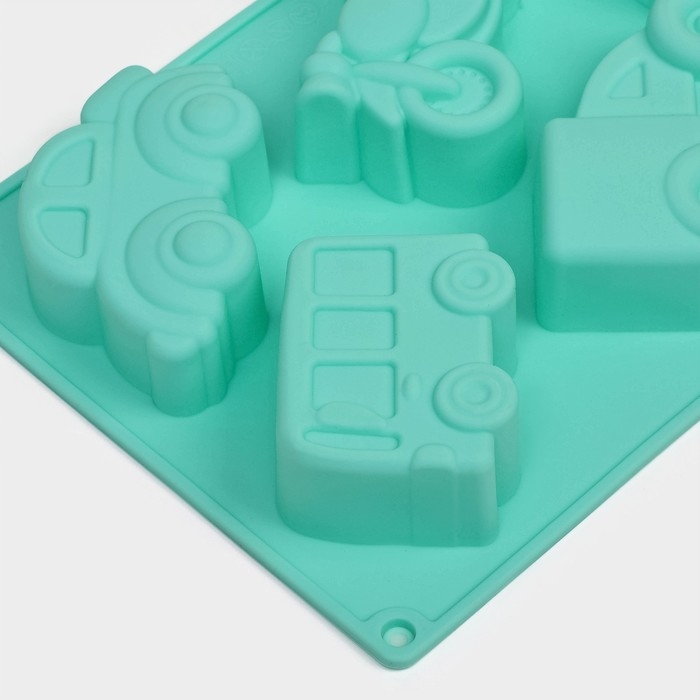 Форма для выпечки Доляна «Транспорт», силикон, 30×17,5 см, 6 ячеек (9×5,5×3,5 см), цвет мятный