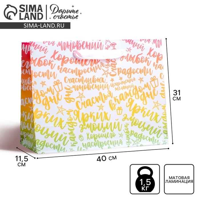 Пакет подарочный ламинированный горизонтальный, упаковка, «Радости!», L 40 x 31 x 11.5 см