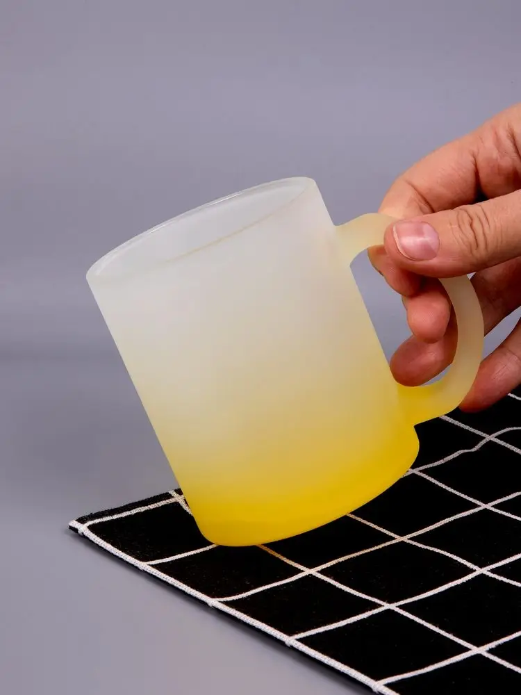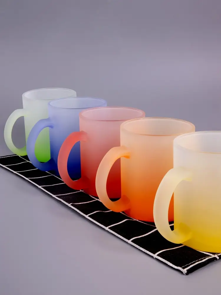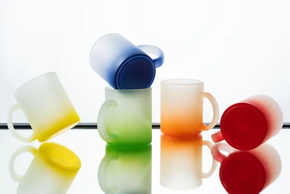 Яркая стеклянная кружка Grade Fade с эффектом омбре и плавным переходом цвета привлекает внимание оригинальным дизайном, а матовая поверхность приятна на ощупь. Подходит для сублимационной печати.