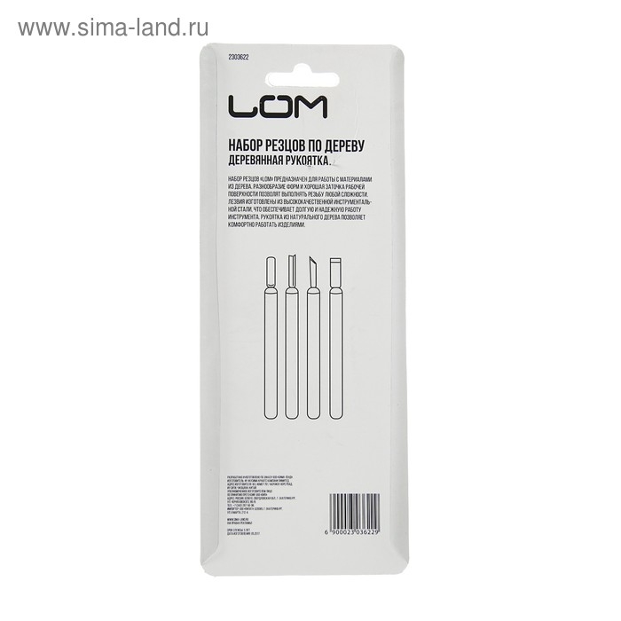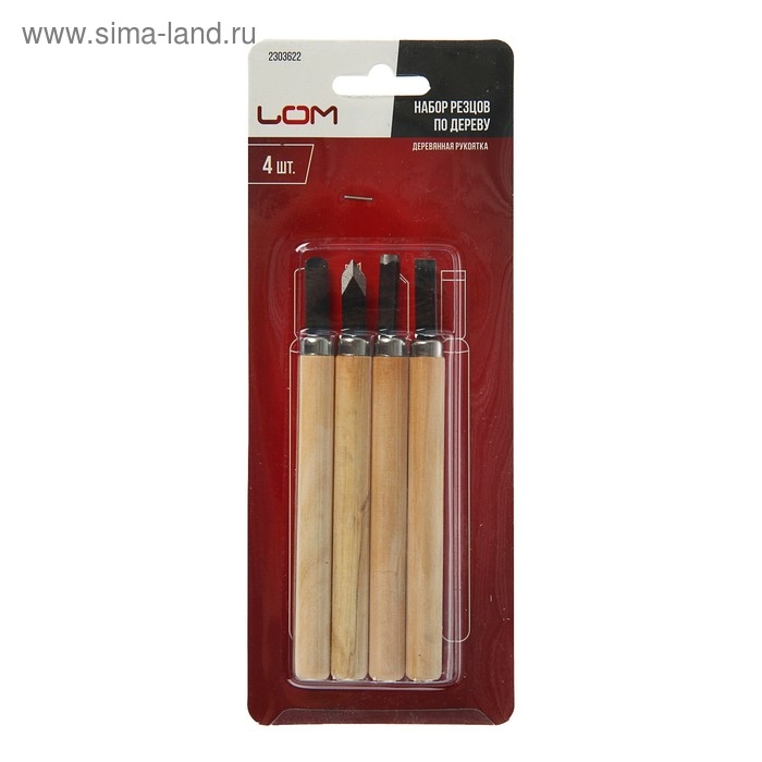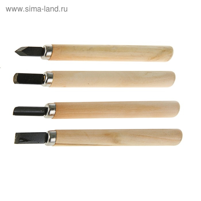 Набор резцов по дереву ЛОМ, деревянная рукоятка, 4 шт.