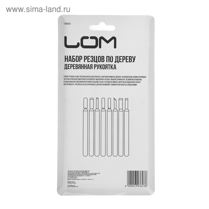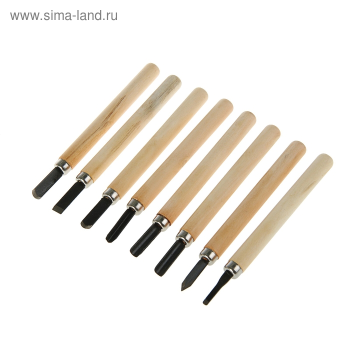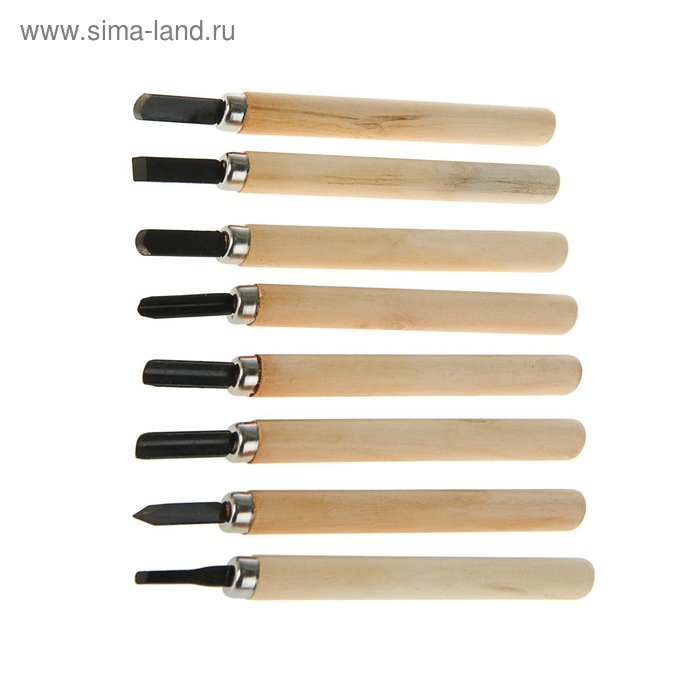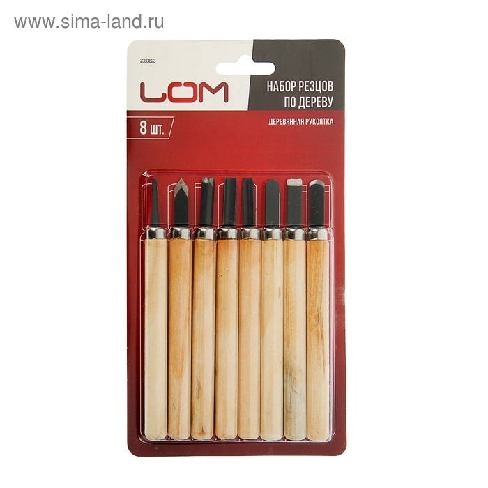 Набор резцов по дереву ЛОМ, деревянная рукоятка, 8 шт.