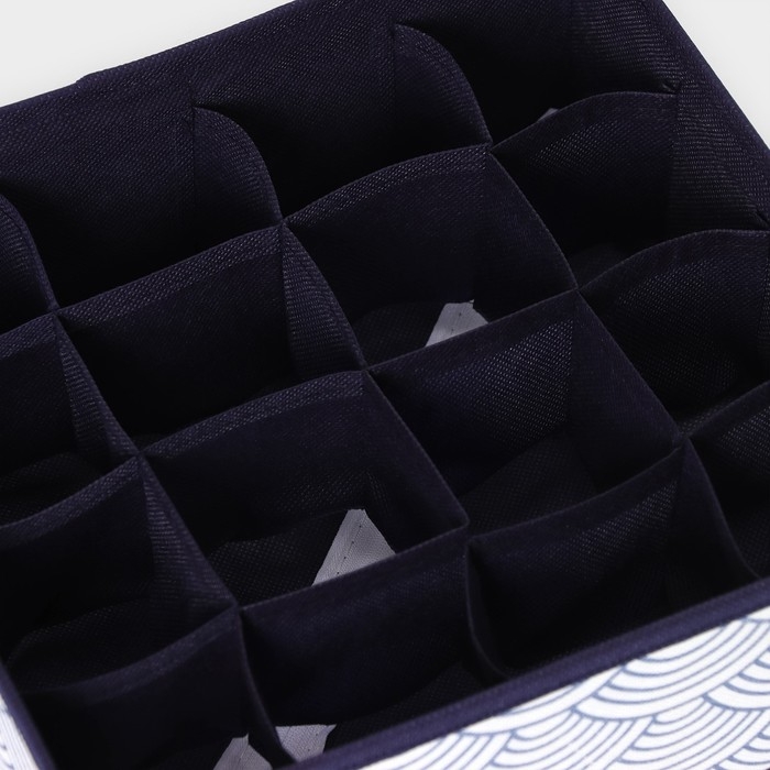 Органайзер для хранения белья Доляна «Волна», 16 ячеек, 27×25×10 см, цвет синий