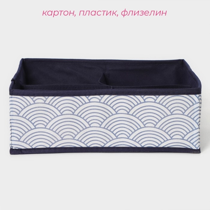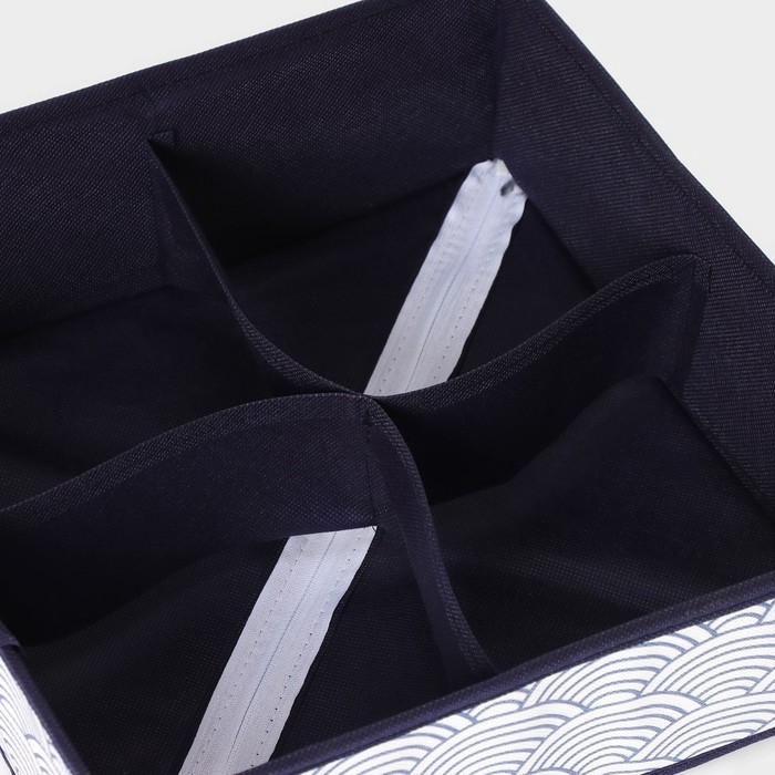 Органайзер для хранения белья Доляна «Волна», 4 ячейки, 29×29×10 см, цвет синий