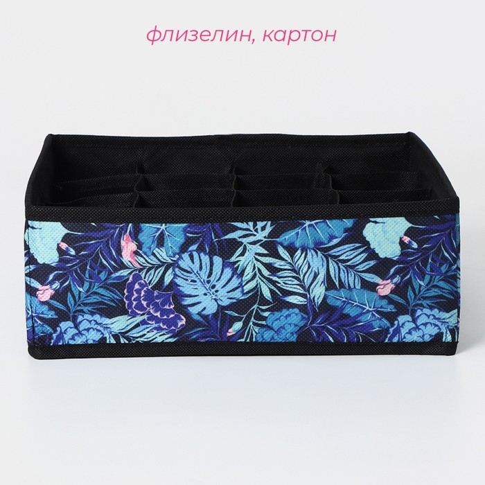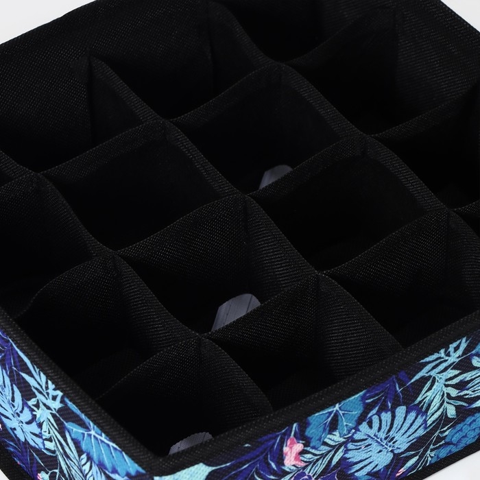 Органайзер для хранения белья Доляна «Тропики», 16 ячеек, 27×25×10 см, цвет синий