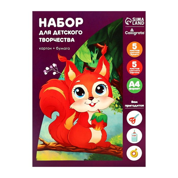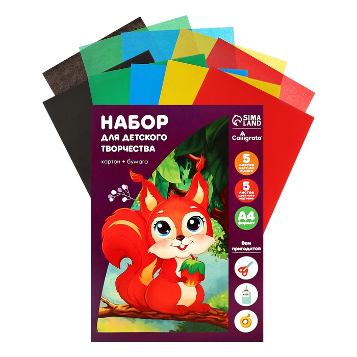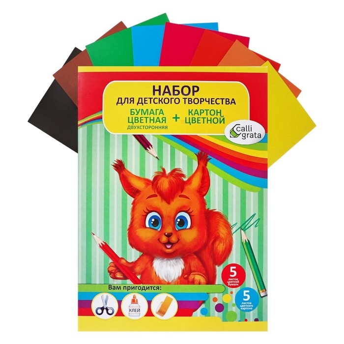 Набор для детского творчества А4, 5 листов картон цветной + 5 листов бумага цветная двусторонняя, Calligrata, МИКС