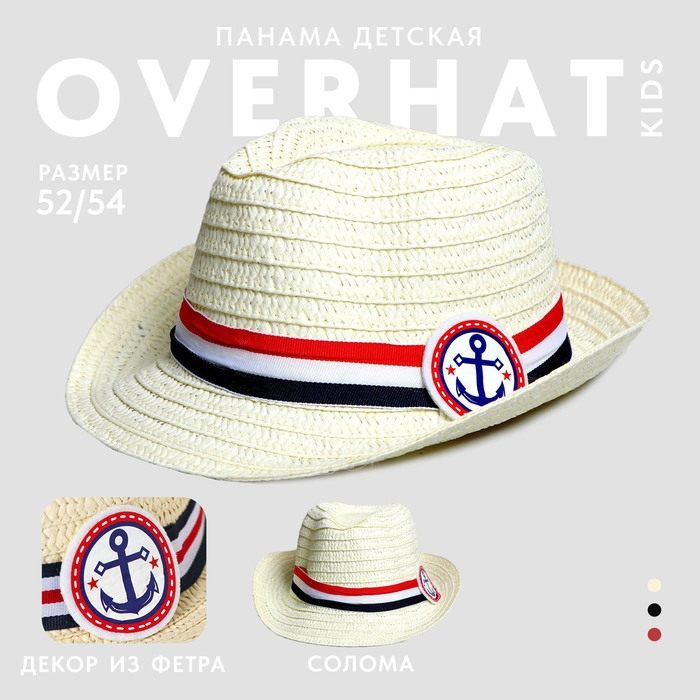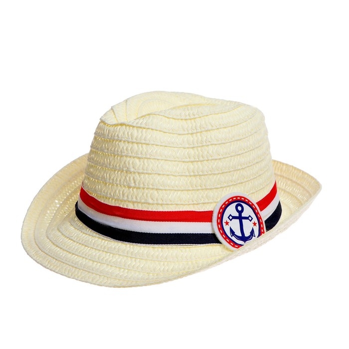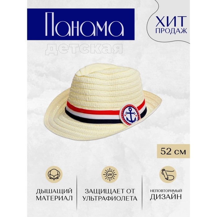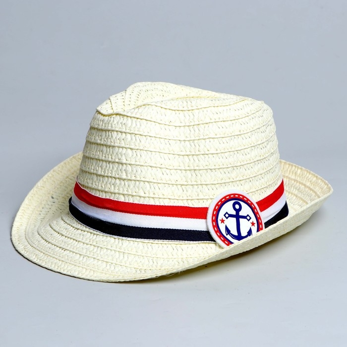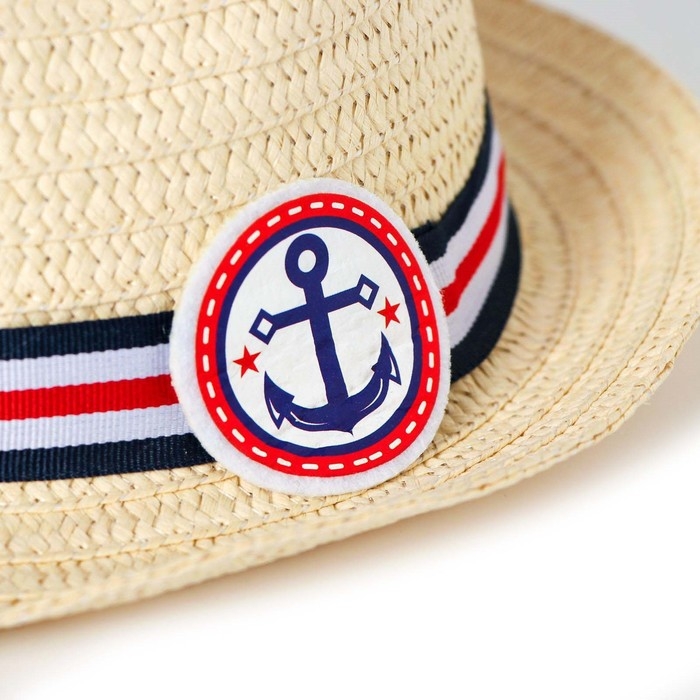 Панама соломенная детская для мальчика «Якорь», р-р 52-54