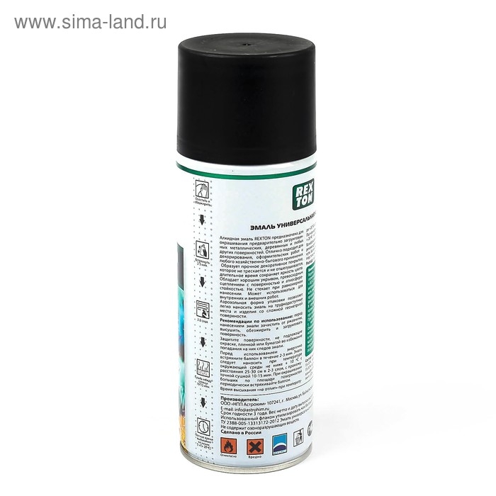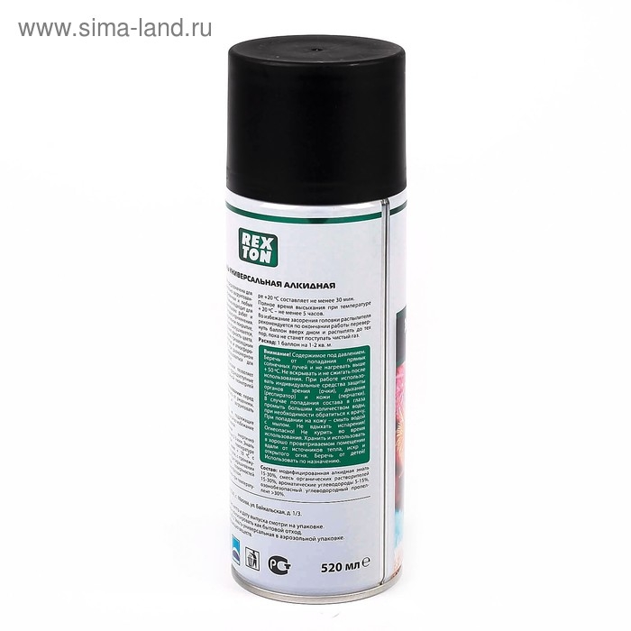 Эмаль алкидная универсальная REXTON, черная матовая, аэрозоль, 520 мл