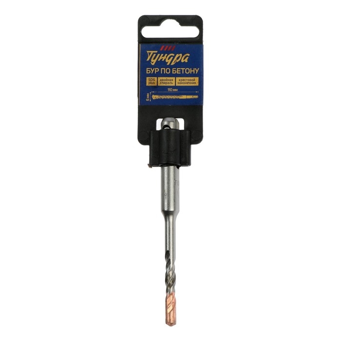 Бур по бетону ТУНДРА, крестовый наконечник, двойная спираль, SDS-plus, 6 х 110 мм