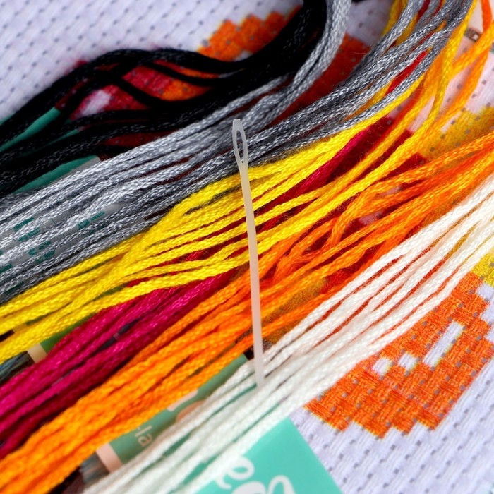Небольшая вышивка с простым узором и цветной схемой — то, что нужно малышу, чтобы освоить новое хобби.