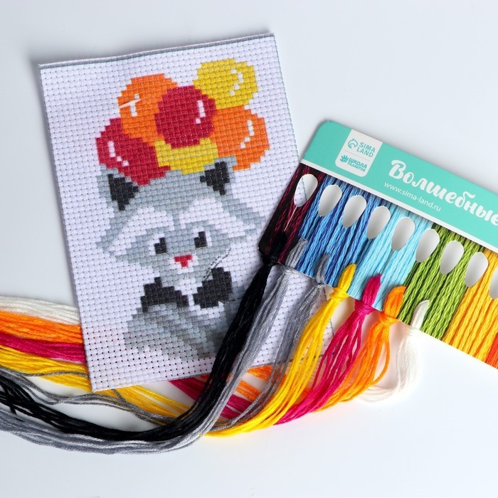 Вышивка крестиком для детей «Енот», набор для творчества, 14 х 10 см