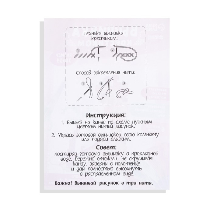 Небольшая вышивка с простым узором и цветной схемой — то, что нужно малышу, чтобы освоить новое хобби.