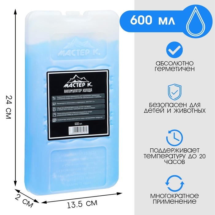Аккумулятор холода - гелевый хладоэлемент для термосумки "Мастер К.", до 20 ч, 600 мл
