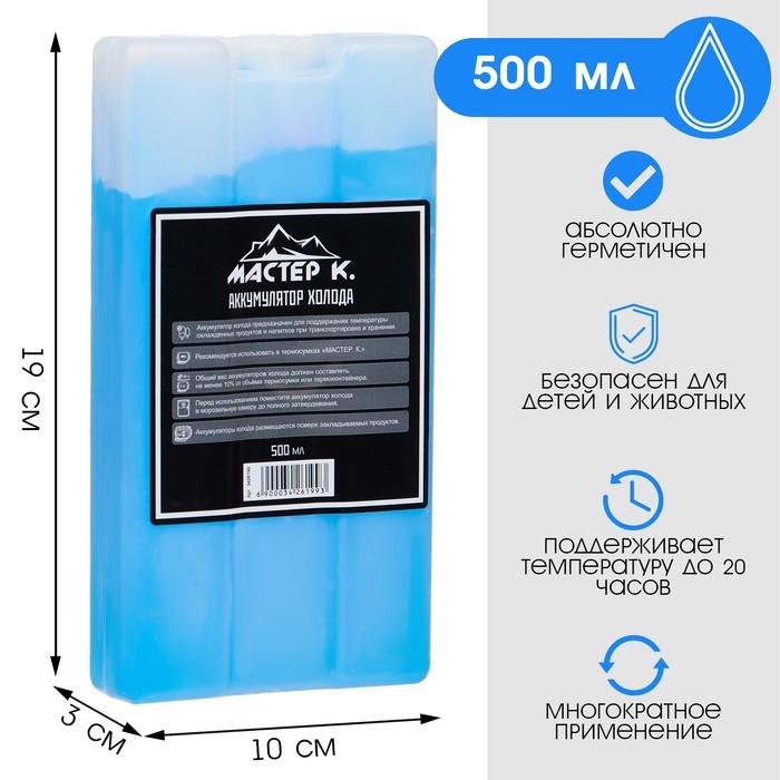 Аккумулятор холода - гелевый хладоэлемент для термосумки "Мастер К.", до 20 ч, 500 мл