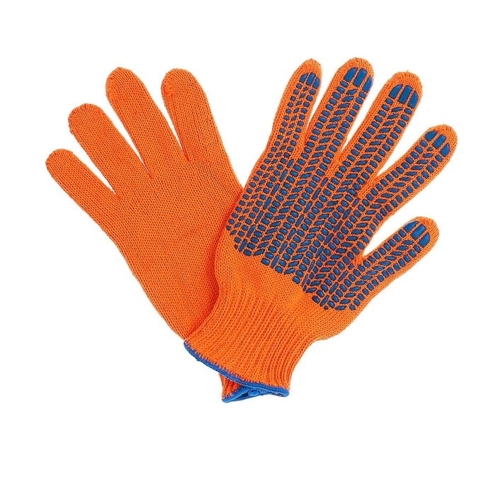 Перчатки садовые, хб, вязка 7 класс, 5 нитей, 3-слойные, размер 10, с ПВХ точками, оранжевые