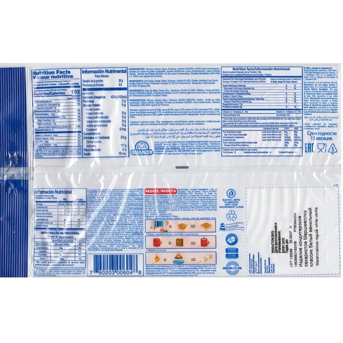 Маршмеллоу GUANDY (Гуанди) — сложный и уникальный продукт, имеющий закрытую технологию производства. Не каждый производитель маршмеллоу способен повторить особую температурную формулу, а ведь именно она придает маршмеллоу идеальную упругость и нежный ванильный вкус. Кроме того, наш маршмеллоу не содержит жир, глютен, лактозу и яичный белок. Технология производства учитывает все требования к такому нежному продукту, поэтому именно наш маршмеллоу максимально долго сохраняет свою мягкость и упругость даже после вскрытия упаковки, а также создает самую стойкую и нежную ванильную пенку при использовании в напитках. Среди европейских сладостей маршмеллоу GUANDY уже много лет занимает лидирующие позиции.