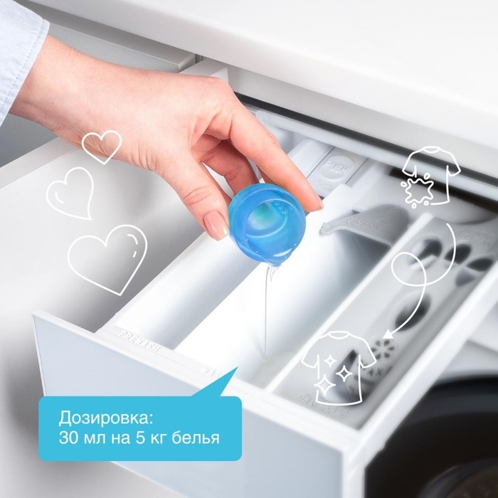 Гипоаллергенный кондиционер-ополаскиватель нейтрализует остатки средств для стирки на ткани, помогает сохранить структуру ткани, защищая волокна от изнашивания и повреждения. Средство обладает антистатическим эффектом. Комплекс растительных К-тензидов обеспечивает легкую глажку белья после стирки и высыхания. Гипоаллергенная парфюмерная композиция с эфирными маслами лимона, бергамота, сантала и мяты придает белью свежий аромат.