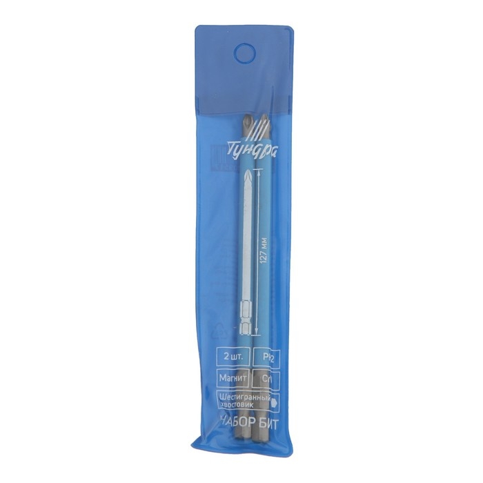 Биты ТУНДРА, намагниченные, сталь CrV, PH2 х 127 мм, 2 шт.