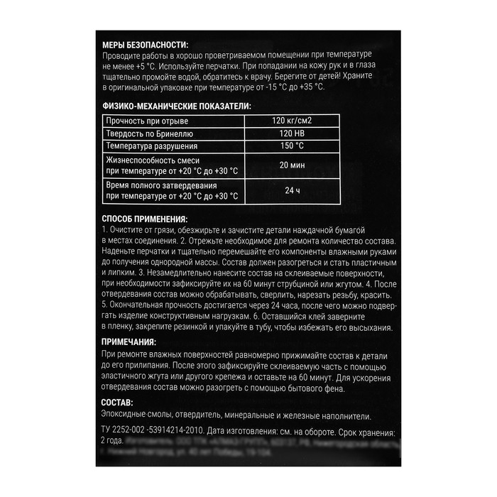Холодная сварка Ремтека для батарей и труб, 45 гр