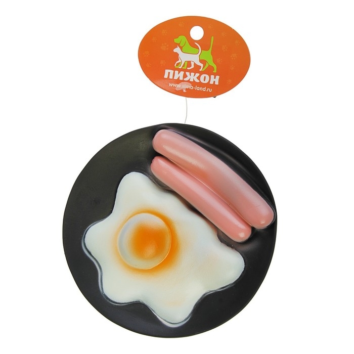 Игрушка пищащая "Завтрак" для собак, 13,5 см, на чёрной тарелке