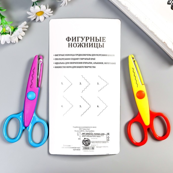 Ножницы фигурные 13,5 см "Яркие краски" МИКС набор 2 шт 15х9 см