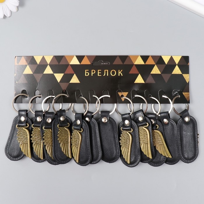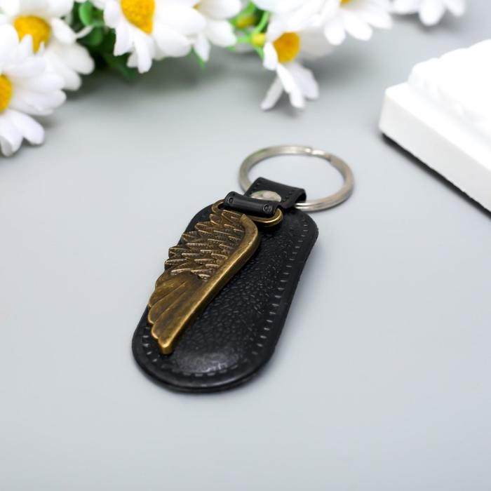 Брелок металл, кожзам "Крыло" 9х4 см