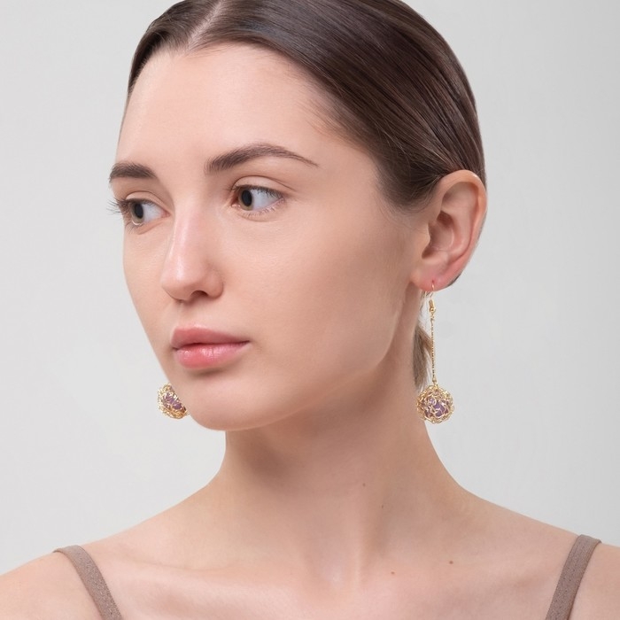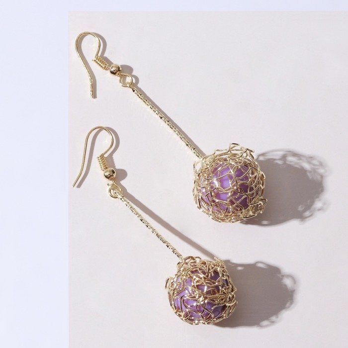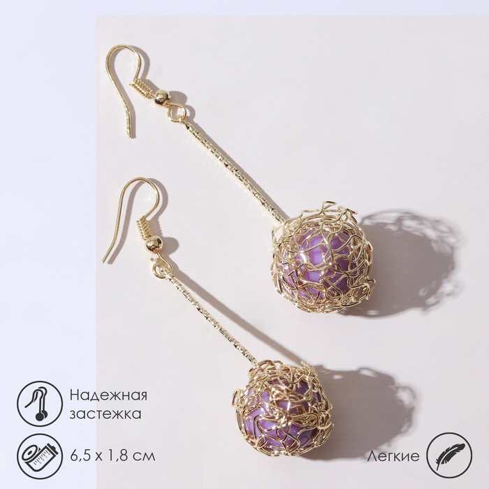 Серьги висячие «Шар плетёный», цвет сиреневый в золоте, 6,5 см