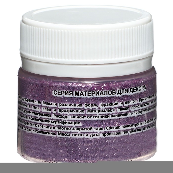 Сухие декоративные блестки различных форм, фракций и цветов. Применяются для декора путем добавления в лаки, клеи и прозрачные материалы, а также присыпаются на липкий слой красок, лаков и других материалов.