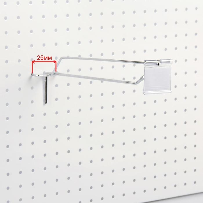 Крючок одинарный с ценникодержателем для металлической перфорированной панели, шаг 50 мм, d=4,8 мм, L=25 см, цвет хром