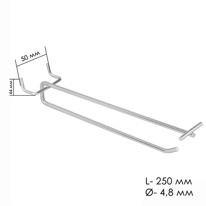Крючок двойной для металл. перфорированной панели, шаг 50 мм, d=4 мм, L=25, цвет хром