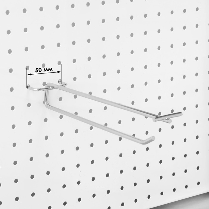 Крючок двойной для металлической перфорированной панели, шаг 50 мм, d=4 мм, L=15, цвет хром