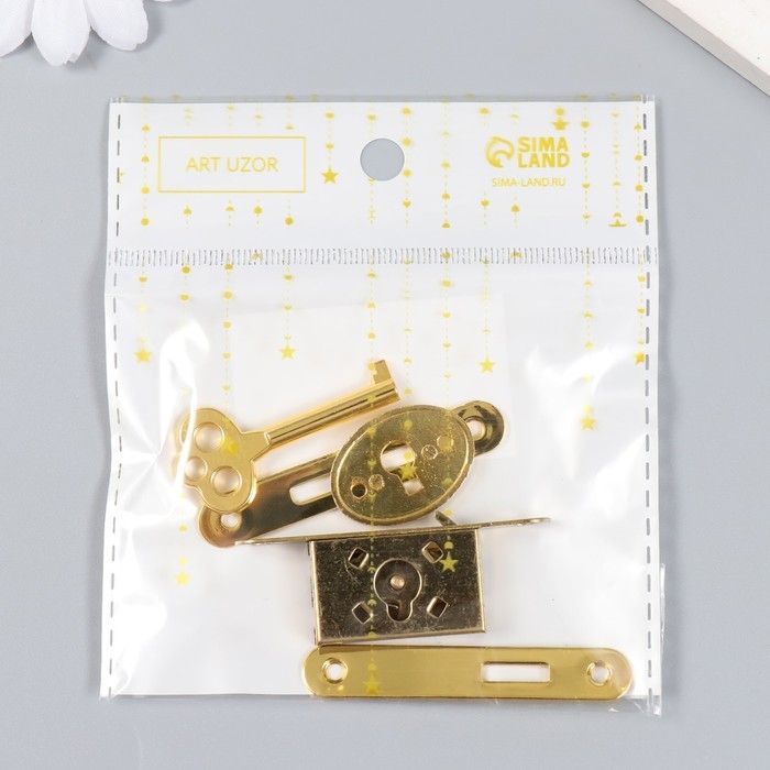 Замок для шкатулки "С ключиком" 5 предметов в наборе 1х5,5 см С-303