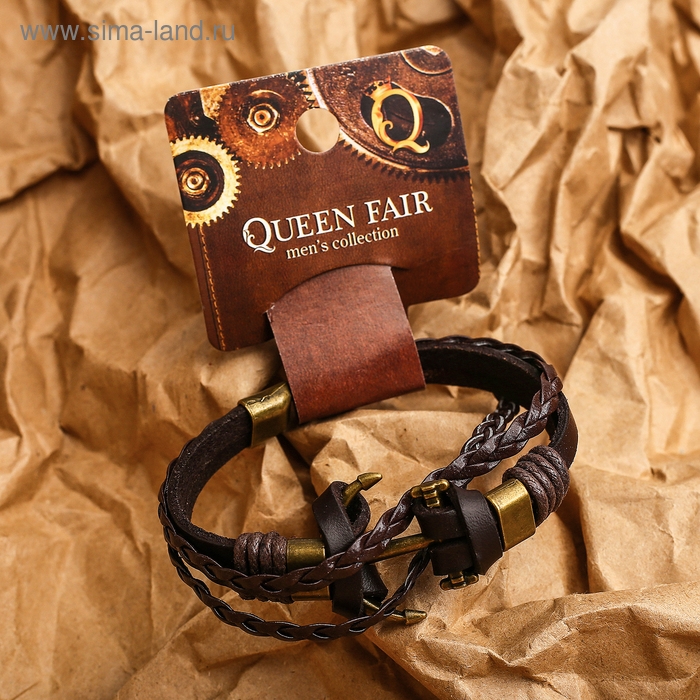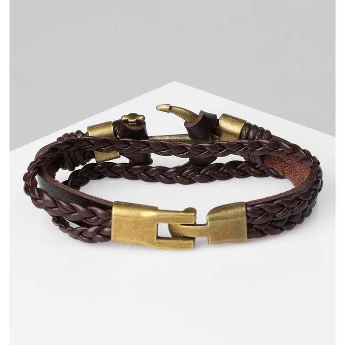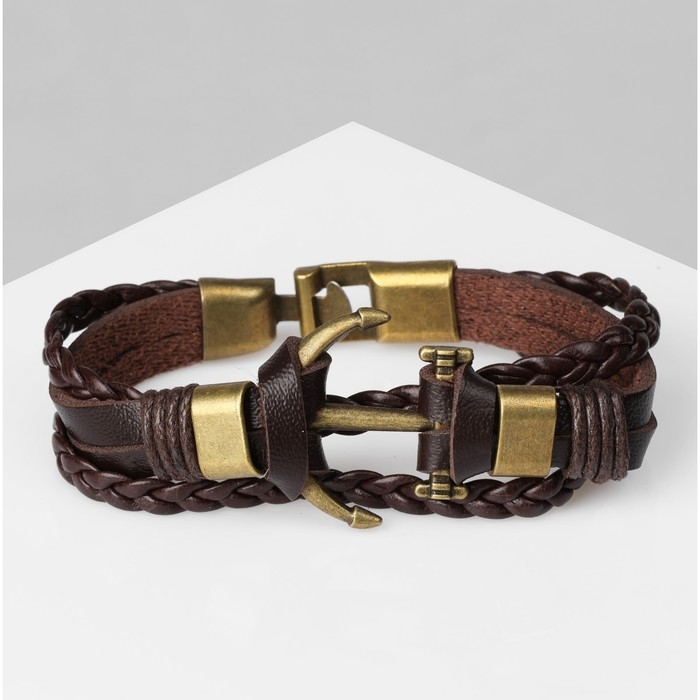 Браслет унисекс «Магия знаков» якорь, цвет коричневый с чернёным золотом, 18 см