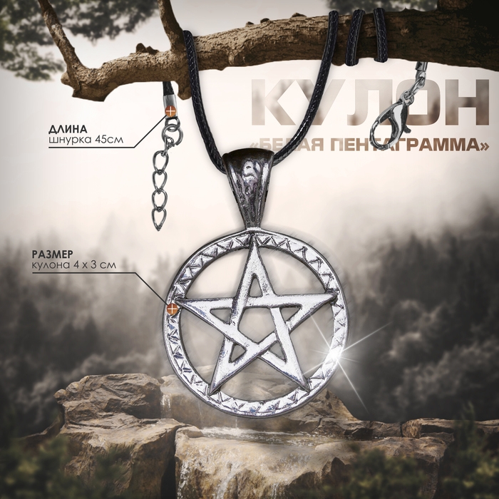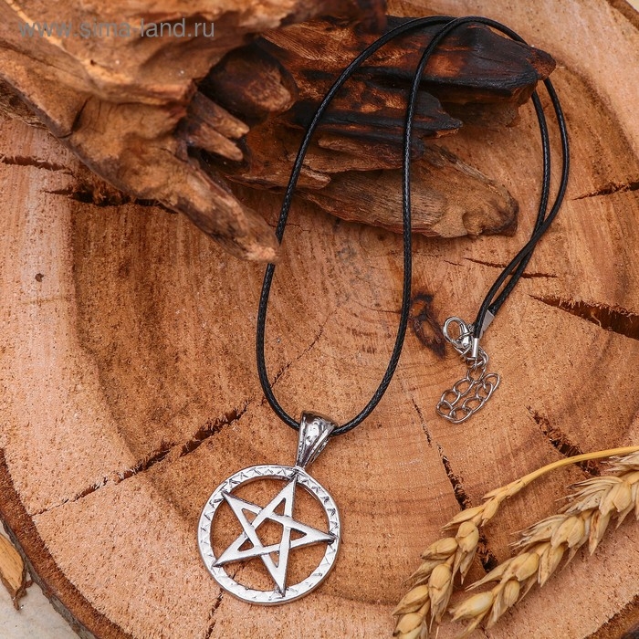 Кулон унисекс «Белая пентаграмма», цвет чернёное серебро на чёрном шнурке, 45 см