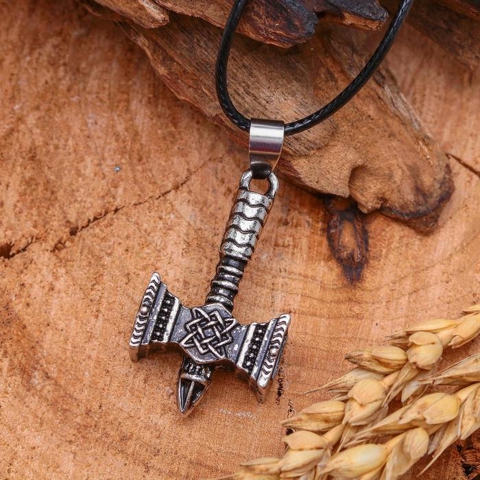 Кулон мужской «Молот Сварога», цвет чернёное серебро на чёрном шнурке, 45 см